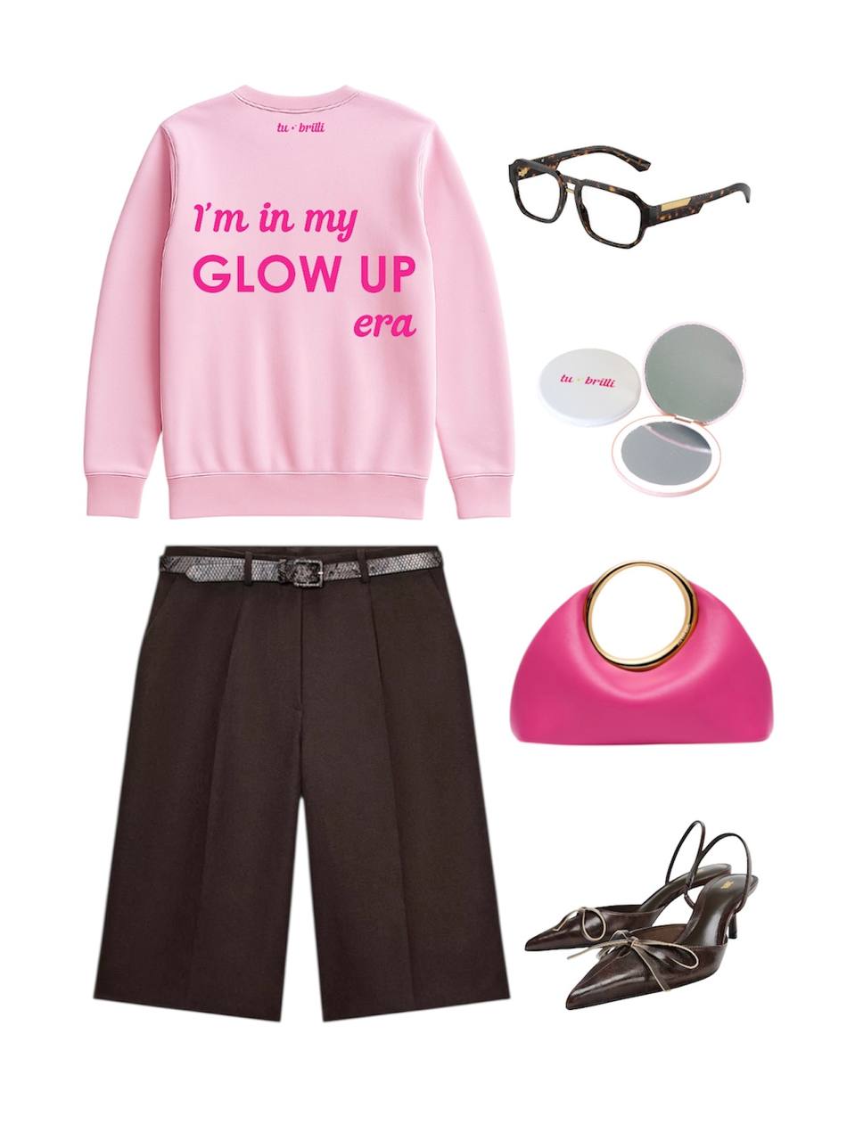 Una felpa motivazionale con frase pensata per celebrare il tuo glow up: la versione di te più consapevole, luminosa e pronta a prendersi lo spazio che merita.